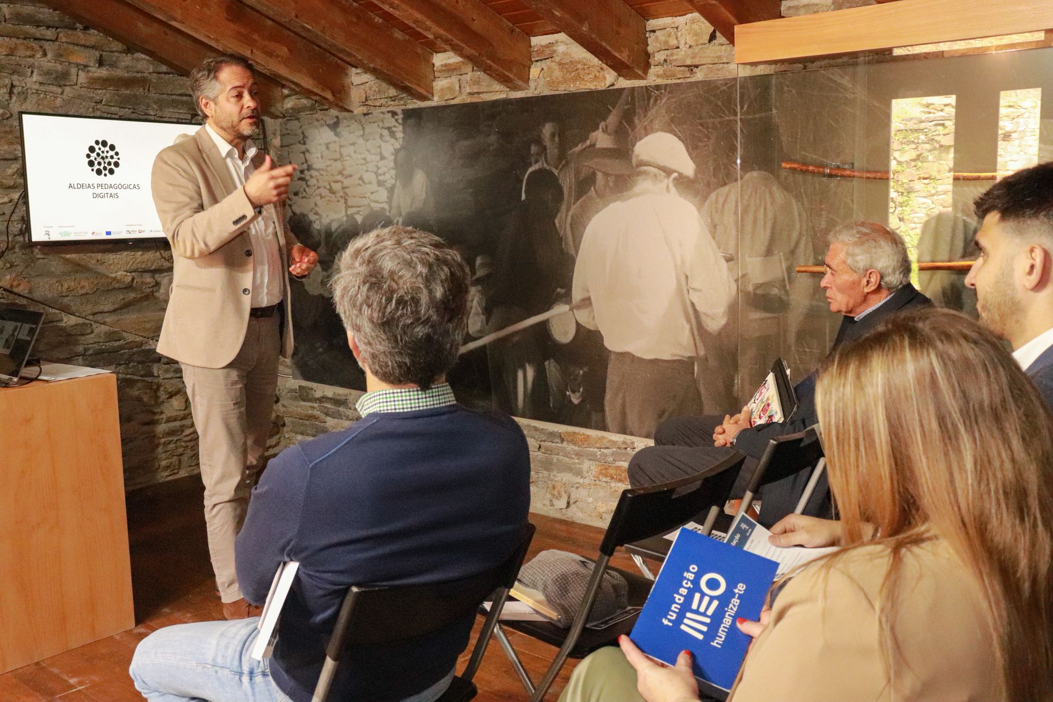 A Portugal Inovação Social participou na apresentação pública do projeto Aldeias Pedagógicas Digitais, que teve lugar no dia 4 de março de 2026, na Casa do Touro, na Aldeia de Rio de Onor (Bragança). O evento reuniu representantes de entidades públicas e privadas, investidores sociais, parceiros institucionais e membros da comunidade local para dar a conhecer esta iniciativa promovida pela Azimute – Associação de Desportos de Aventura, Juventude e Ambiente.